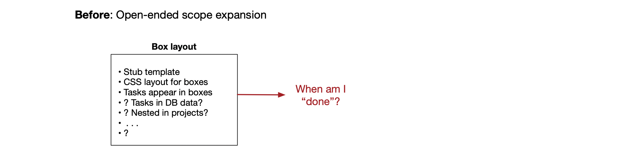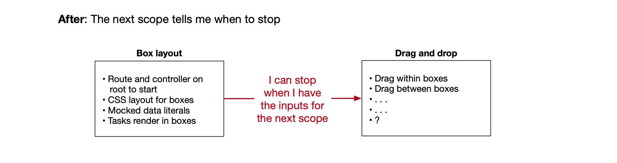 Thinking about this gives me a new appreciation for the role of sequence in scoping. Scoping isn't just about bundling tasks into completable units. The very sequence of the scopes informs what "completed" means in a path-dependent chain from right to left.