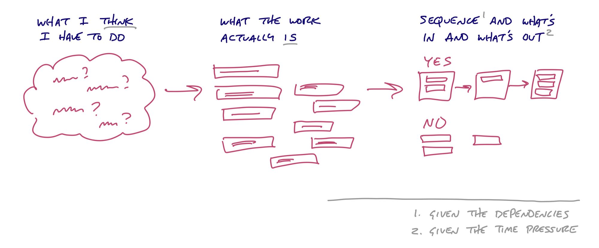 The thing is, when smart people tackle work, they actually do work on the work to figure out what the work is. They do it in their heads or on paper next to their laptop or on a whiteboard — not in some to-do app. That's because traditional to-do tools are made to account for work, not figure out what the work is.