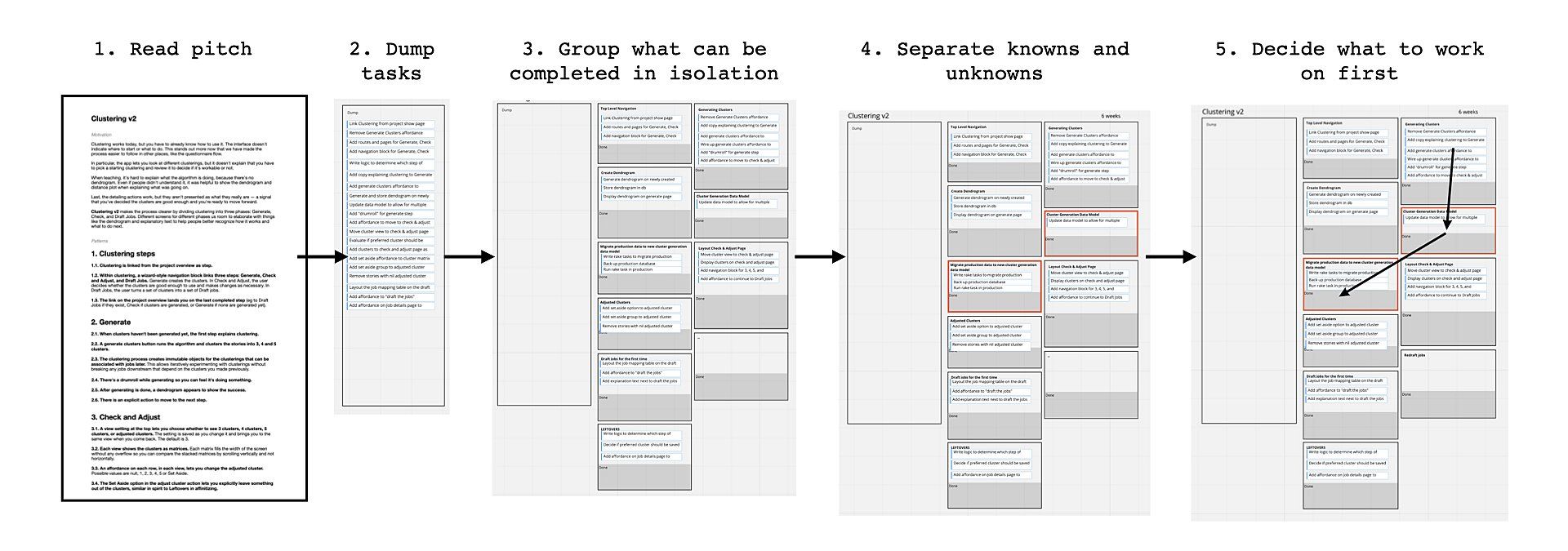 [Before doing this] I understood the pitch, but I couldn't really speak to what should be worked on first ... what goes together ... what might we be able to be cut if we're running out of time. ... I haven't written any code yet, and my feelings have drastically changed about whether I can deliver this well within the timeframe and deliver everything that's wanted.