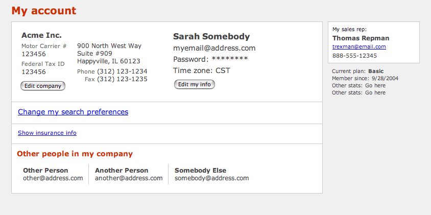 In my shorthand I've indicated that the link "Show/hide insurance info" will show or hide the block below it with Javascript. This satisfies 9 ("People rarely view or change insurance info").