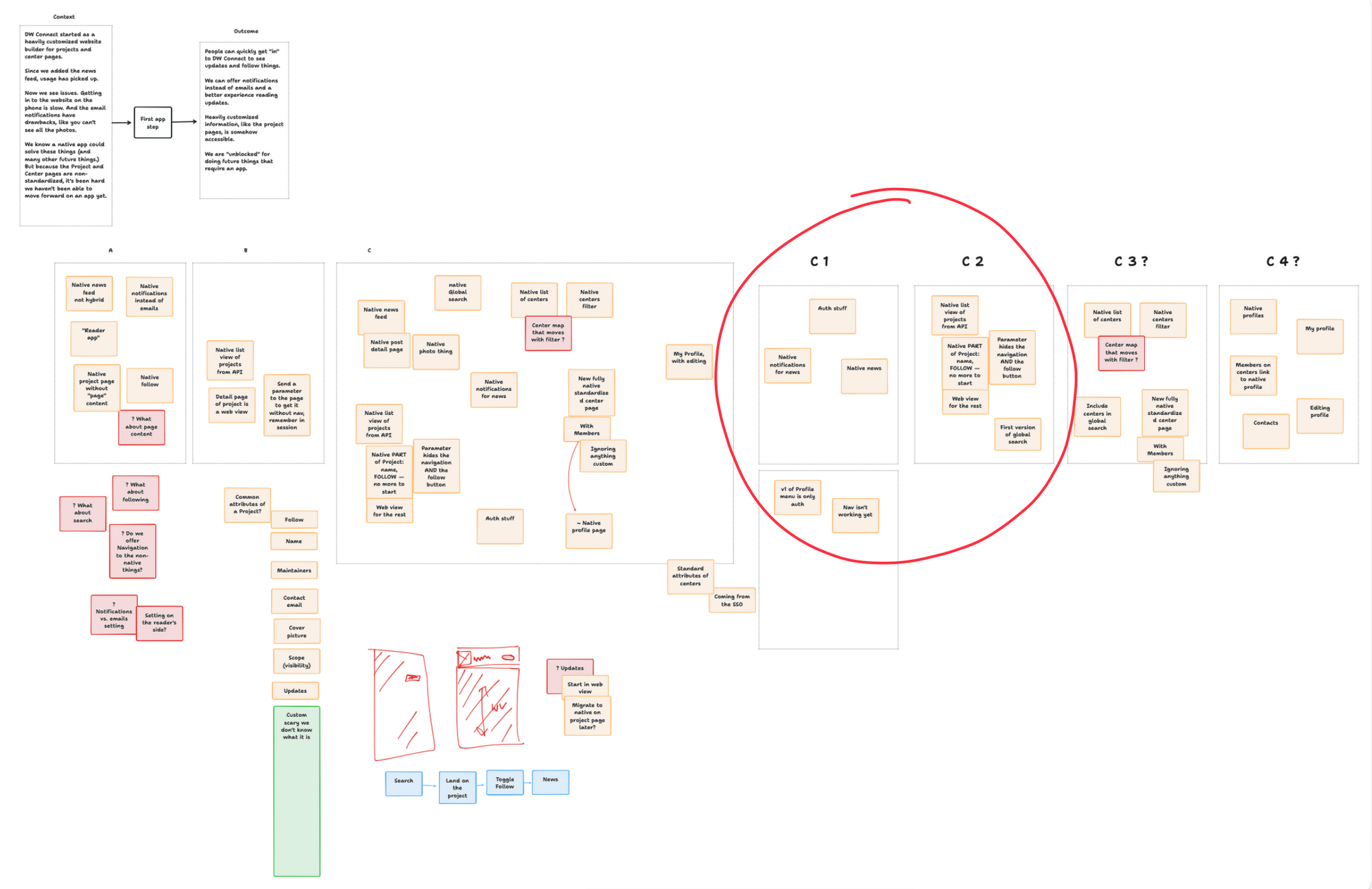 As a next step, we can package what's on the wall into a document, so we can help the people who weren't there get to the same a-ha we had. (We'll definitely need to do that if we're going to involve more people in the project.)