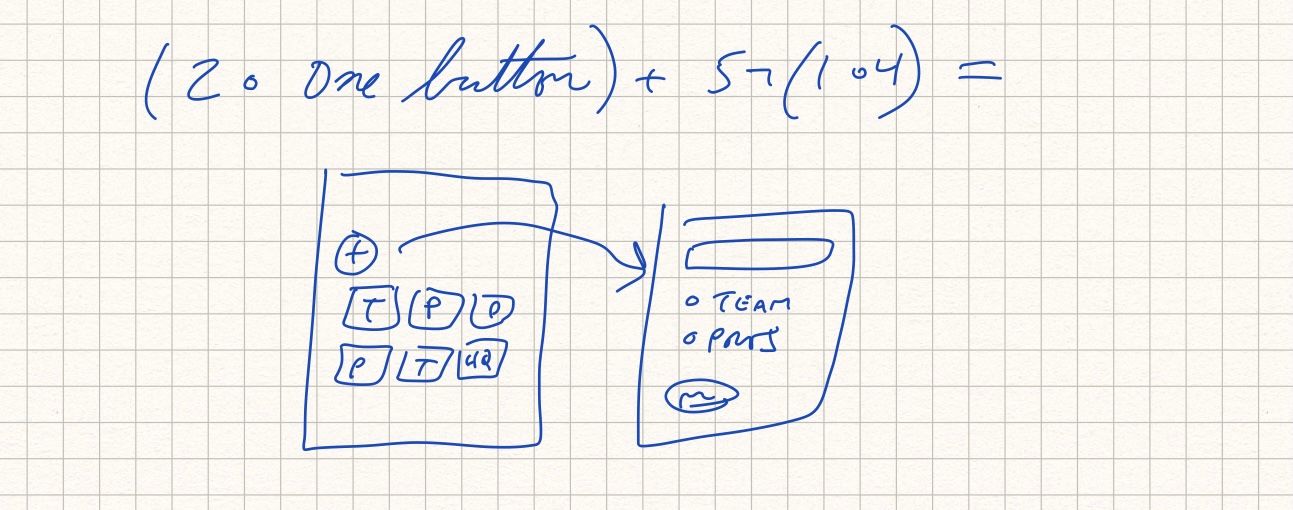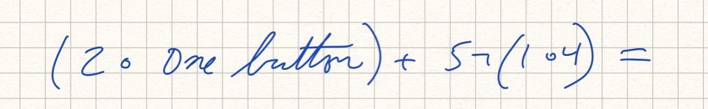 Instead of writing in “one button”, I could have defined a system for that and numbered it 6. Then the statement would be purely symbolic: (2 • 6) + 5 ¬ (1 • 4). But I just thought of it as I was going, so why bother slowing down. This is just for me.