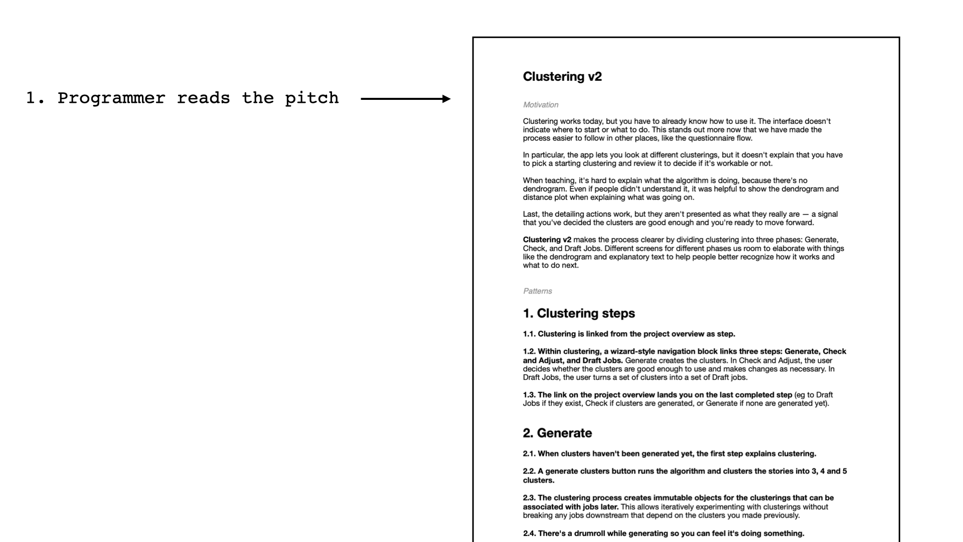 Which brings me back to the new kick-off exercise. On the one hand it's a prescribed process, which can help less experienced programmers. And since the process is prescribed, it's also reproducible at scale.